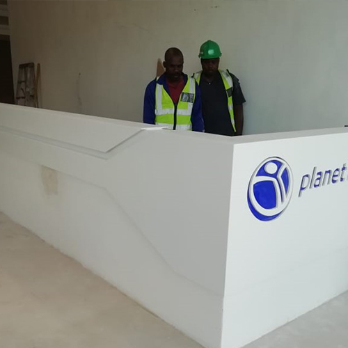 - Wear and Tear: Staron® Solid Surfaces are manufactured to be scratch and impact resistant, and the choice of colour in Glacier White was ideal for Planet Fitness and their high-traffic areas. The smaller particulates and lighter colour show wear less visibly and require maintenance less often.